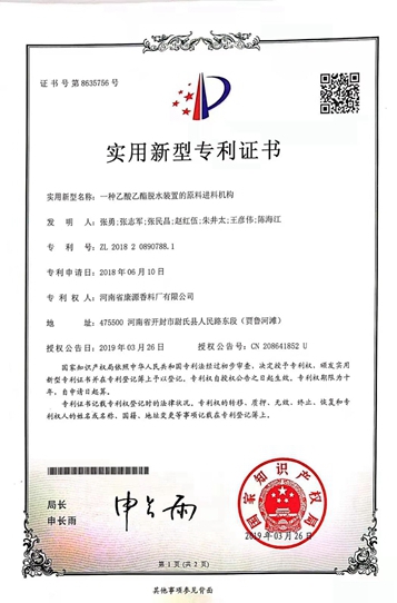 河南省康源香料廠(chǎng)有限公司坐落于尉氏人民路東段(賈魯河灘),是生產(chǎn)經(jīng)營(yíng)食用香精香料、食品添加劑、精細(xì)化工產(chǎn)品生產(chǎn)銷(xiāo)售的企業(yè),統(tǒng)一社會(huì)信用代碼:91410223799151685B,公司成立于1997年,注冊(cè)資金850萬(wàn)元,廠(chǎng)區(qū)占地面積14300平方米,廠(chǎng)房建筑面積13600平方米,現(xiàn)有企業(yè)員工186人,其中擁有高、中級(jí)職稱(chēng)技術(shù)人員48人,主要生產(chǎn)銷(xiāo)售產(chǎn)品有:食品添加劑(己酸乙酯、乳酸乙酯、丙酸乙酯、異丁酸乙酯、丁酸乙酯、 乙酸乙酯、庚酸乙酯乙酸異戊酯、辛酸乙酯、乙酸丙酯、苯乙醇、2,3丁二酮、冰乙酸(低壓羰基化法)、乳酸、己酸、丁酸、丙酸、乙縮醛、甘油、己酸烯丙酯、庚酸烯丙酯),食品用香精(食品用香精-液體),復(fù)配食品添加劑(復(fù)配酒類(lèi)增味劑)實(shí)際綜合生產(chǎn)能力達(dá)到3萬(wàn)噸/年,固定資產(chǎn)2810萬(wàn)元,總資產(chǎn)13200萬(wàn)元。