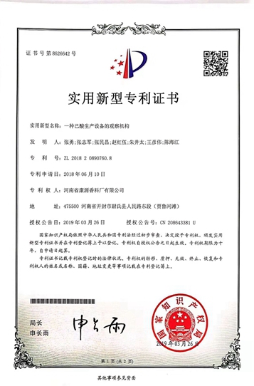 河南省康源香料廠(chǎng)有限公司坐落于尉氏人民路東段(賈魯河灘),是生產(chǎn)經(jīng)營(yíng)食用香精香料、食品添加劑、精細(xì)化工產(chǎn)品生產(chǎn)銷(xiāo)售的企業(yè),統(tǒng)一社會(huì)信用代碼:91410223799151685B,公司成立于1997年,注冊(cè)資金850萬(wàn)元,廠(chǎng)區(qū)占地面積14300平方米,廠(chǎng)房建筑面積13600平方米,現(xiàn)有企業(yè)員工186人,其中擁有高、中級(jí)職稱(chēng)技術(shù)人員48人,主要生產(chǎn)銷(xiāo)售產(chǎn)品有:食品添加劑(己酸乙酯、乳酸乙酯、丙酸乙酯、異丁酸乙酯、丁酸乙酯、 乙酸乙酯、庚酸乙酯乙酸異戊酯、辛酸乙酯、乙酸丙酯、苯乙醇、2,3丁二酮、冰乙酸(低壓羰基化法)、乳酸、己酸、丁酸、丙酸、乙縮醛、甘油、己酸烯丙酯、庚酸烯丙酯),食品用香精(食品用香精-液體),復(fù)配食品添加劑(復(fù)配酒類(lèi)增味劑)實(shí)際綜合生產(chǎn)能力達(dá)到3萬(wàn)噸/年,固定資產(chǎn)2810萬(wàn)元,總資產(chǎn)13200萬(wàn)元。